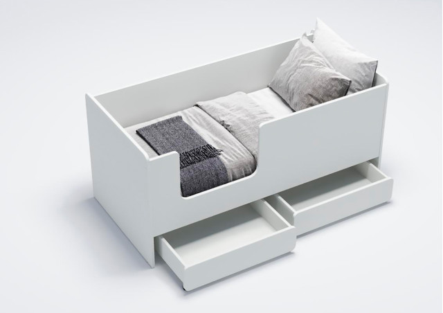 Основание кровати выполнено из реечного настила, обеспечивая правильную поддержку матраса и обеспечивая комфортный сон малыша. Невысокая конструкция кровати делает ее доступной для самостоятельного забирания и спускания, способствуя развитию навыков независимости у ребенка.