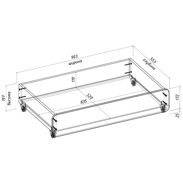 Длина/Ширина/Высота (мм) 903 × 553 × 197